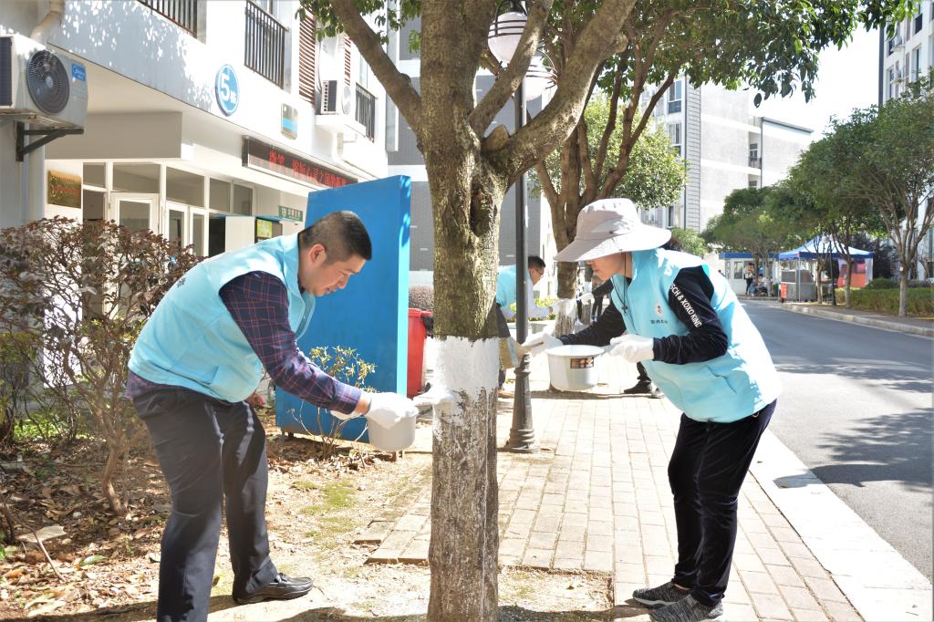 全体成员在物业中心老师及绿化师傅的指导下进行分组和分工,通过使用木刷、涂白剂等工具对各自“责任区”内的绿植进行刮除树木死皮翘皮、涂白等作业。活动过程中,电子工程系各位老师互相配合、态度积极、行动高效,在大家的携手努力下,共完成50余棵大树除皮、涂白工作。参与活动的党员老师表示该活动意义非凡,并呼吁大家用实际行动保护树木、爱护环境。