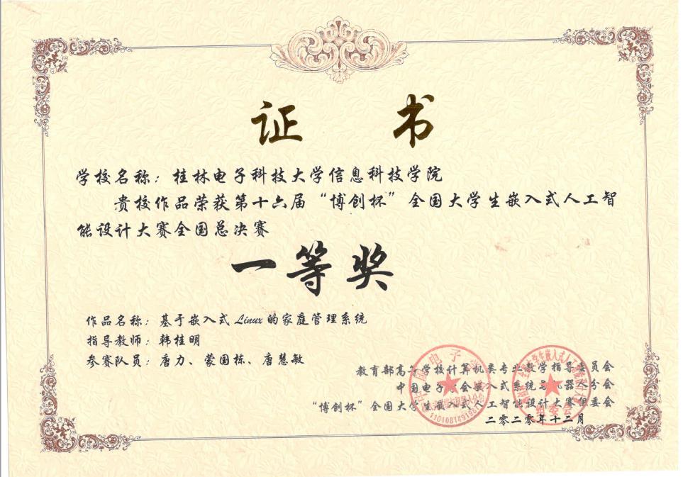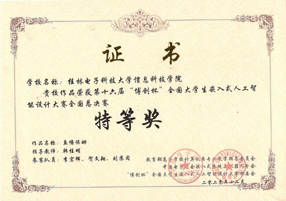 近日,由中国教育部高等学校计算机类专业教学指导委员会、中国电子学会、中国电子学会嵌入式系统与机器人分会、北京博创智联科技有限公司联合举办的《第十六届“博创杯”全国大学生嵌入式人工智能设计大赛》全国总决赛成功举办。学院电子工程系13名师生共三支队伍进入全国总决赛。经过与来自全国两百余支队伍的激烈角逐,以绝对的优势展示了作品的创新设计主题和创意理念,最终一举荣获全国特等奖1项,一等奖2项的优异成绩!