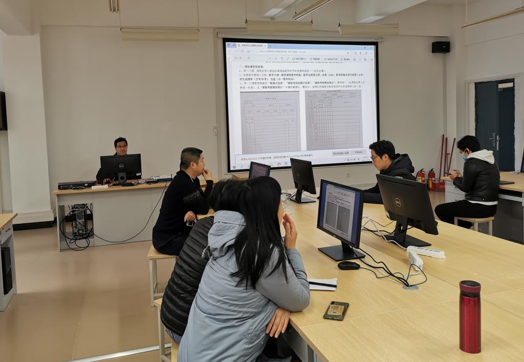 根据学院教务部的管理要求,结合我系教学实际情况,我系全体教职工对2020-2021(一)学期所有课程档案进行整理。韩副主任从教学大纲、试卷、教学档案、过程登记表等几方面进行严格要求,要求档案各项数据和信息准确无误,规范我系教学材料归档工作。