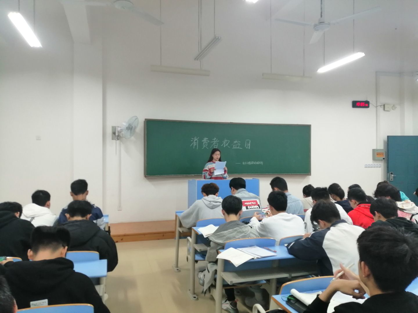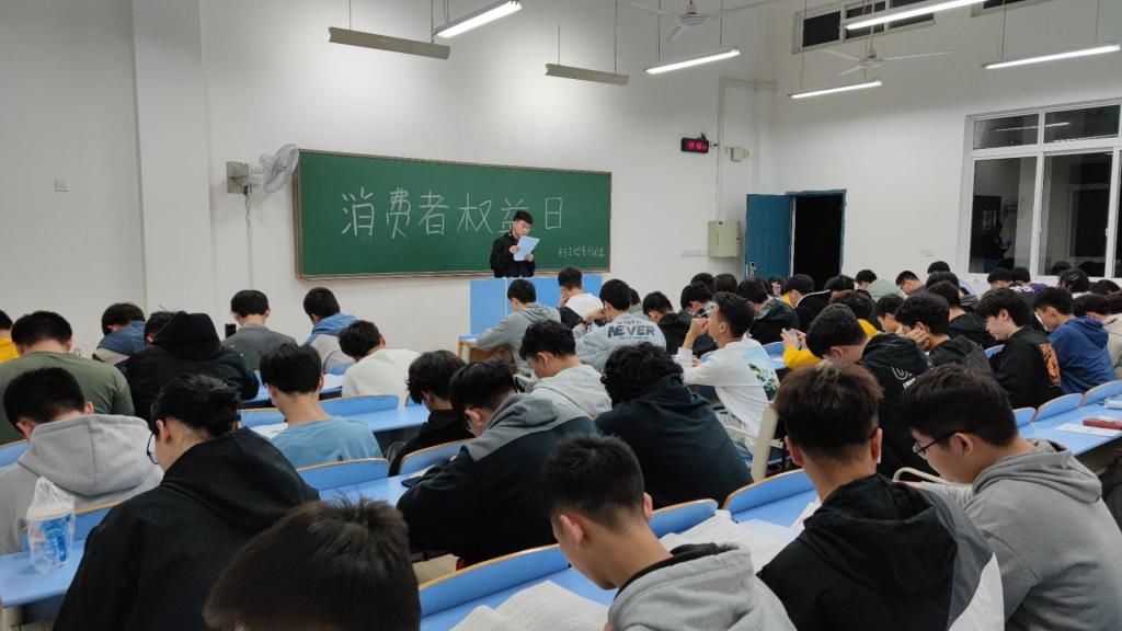 课上,各班团支书介绍了“3.15”国际消费者权益日的由来、消费者享有的权利、新消费者权益保护法等六大亮点,并通过真实事例向同学们分析,科普了一些简单的维权常识,提高了同学们依法自我保护的意识。