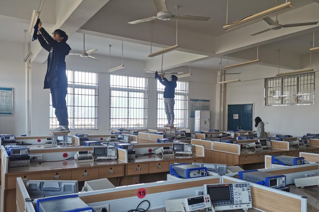 实验室是学习的第二课堂,为进一步提高实验室环境质量,1月14日下午,电子工程系组织全系教工开展实验室大清扫活动。