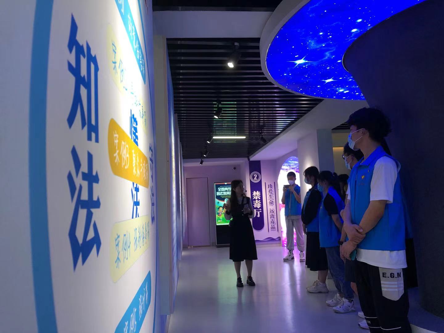培训中,七星区人民检察院工作人员周雅萍、黄菲带领同学们对未成年人法治教育基地进行参观,并通过人身安全防护、网络安全、基本法律法规常识等方面向同学们讲解关于普法解说的相关事宜,希望同学们能将普法教育与志愿者精神相互结合,关怀未成年人的健康成长。