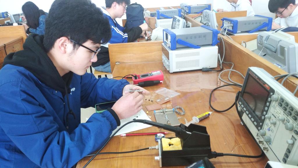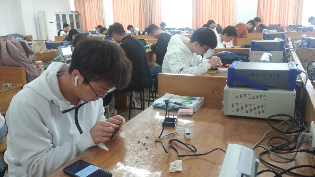 为提高同学们的实践动手能力,丰富同学们的日常生活。4月19日中午,电子工程系在42309、42307教室开展“火光”焊接大赛,我系共100名同学参加本次活动。