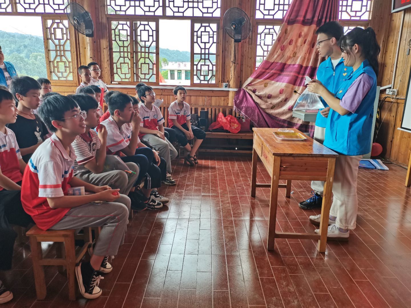 活动期间,志愿团队前往广西三江县红路村开展实践调研,在当地妇联主席的带领下,团队成员与当地村委座谈交流,了解红路村的基本情况,并对当地留守儿童进行安全教育、普法宣传讲解,与孩子们一同完成素质拓展游戏与科学小实验。最后,在村委的协助下,团队成员对多户留守儿童家庭进行了走访。