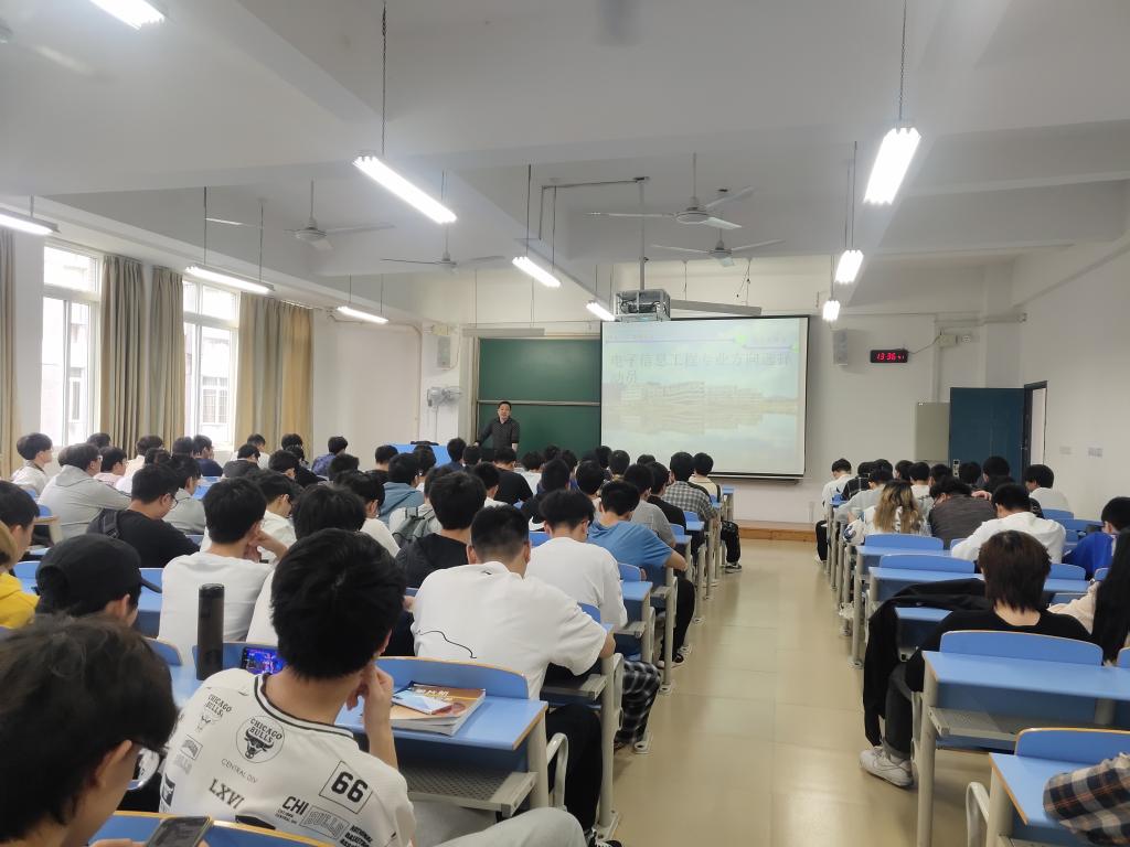 5月17日中午,电子工程系在32204教室、32307教室开展电子信息工程专业分方向介绍会,本次介绍会分为两场同时进行,分别由系副主任韩桂明、电子信息工程教研室主任赵志鹏主讲,我系电信专业学生参加会议。