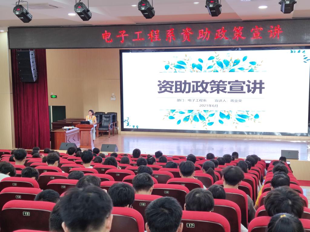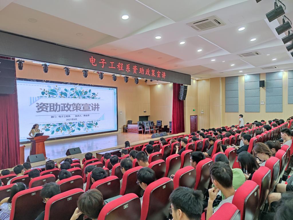 为贯彻落实国家资助政策,做好精准资助,6月29日,电子工程系于51206报告厅顺利开展学生资助政策宣讲会,电子工程系2019级辅导员蒋金荣担任主讲,全系受资助学生及各年级各班级资助委员参加会议。