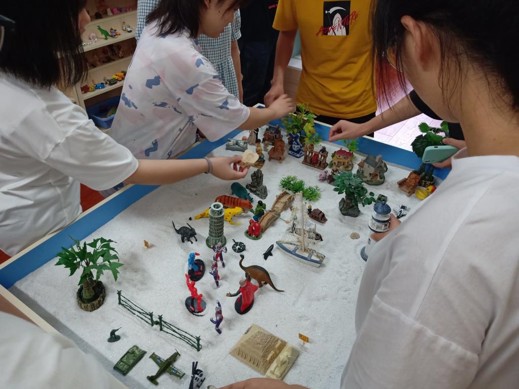 活动开始,贾旺旺老师通过PPT展示,引用实例为同学们介绍生命的意义,从思想上提高同学们对生命的重视,要求大家依照本次活动的主题,分小组绘制海报,到沙盘游戏室进行沙盘布置。最后,同学们一同来到田径场,进行最后一个项目——众星捧月,各组队员齐心协力,互相鼓励,克服心理障碍,大胆挑战自我,展现了精彩的团队作战。