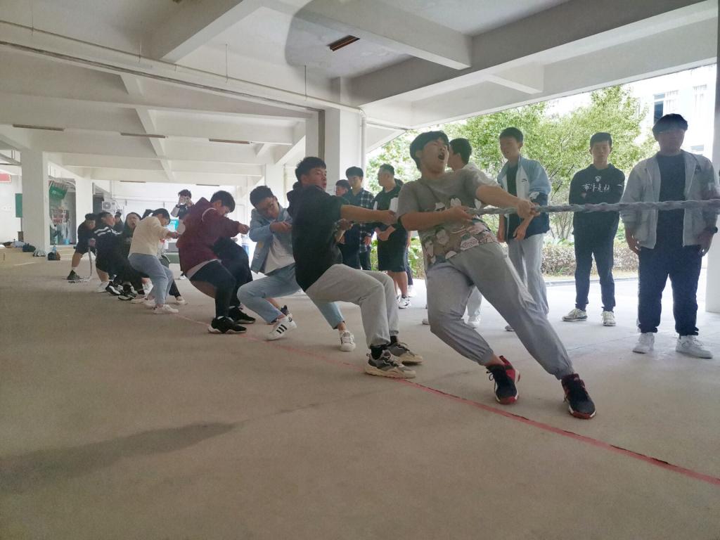 本次比赛以班级为单位,抽签分组决定比赛顺序,两两竞争,实行淘汰制晋级方式。比赛哨声响起,参赛队员们紧握长绳,卯足了劲拼命往后拉。未参加的同学自发组成拉拉队为比赛队员呐喊加油,哨子声、呐喊声此起彼伏,现场激烈的比赛氛围将整个活动推到高潮。经过激烈的角逐,电信一班获得本次拔河比赛的冠军。