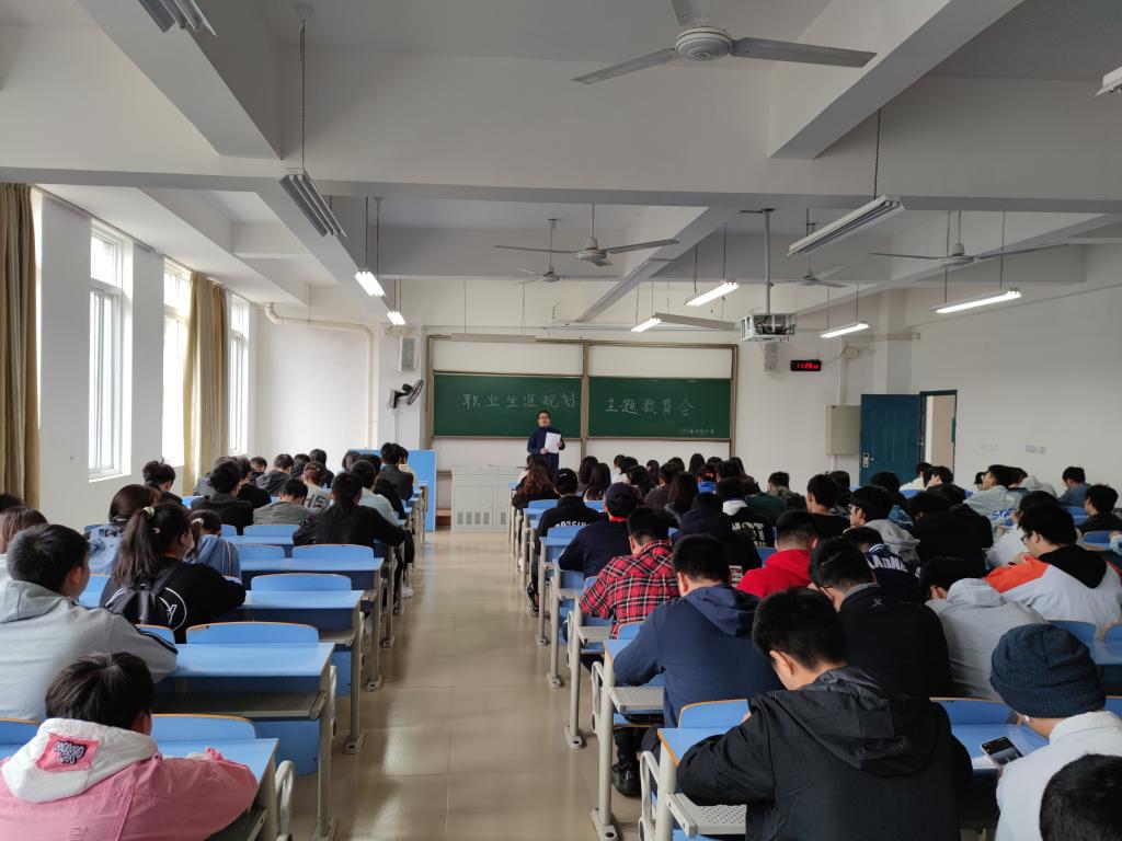 会上,欧老师对2019级同学的本学期的学习课程安排、创新创业实践学分修读、学士学位授予要求等方面做了详细分析,从专业技能学习方面指导同学们做好规划。随后,结合大三学生生活特点、习惯养成和就业指导等内容,向同学们提出了职业规划建议:一是建议同学们认真分析大三学习面临的形势,学好专业知识,选择好面临考研、直接就业或创业的人生选择题;二是强化个人专业技能的学习,注重个人综合能力提升,以积极的心态应对今后的职业发展。最后,对于学生完成课程学习后面临的实习安排等方面向同学们介绍了学校校企合作的实习情况,鼓励同学们提前做好实习的准备,充分利用本学期的就业指导课程提升个人面试技巧等。
