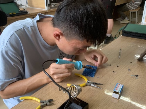 比赛过程中,同学们专心致志、细心谨慎,根据电路图选择合适的元器件进行焊接。经过激烈的比拼,最终评选出一等奖2名,二等奖4名,三等奖5名。