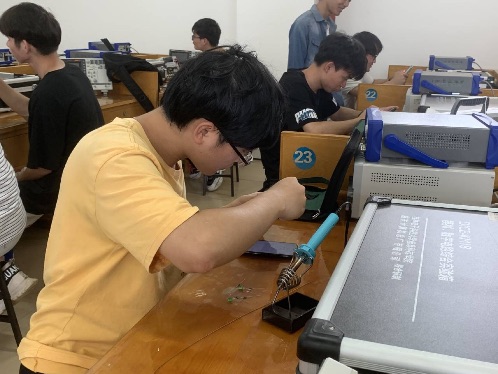 为了提高同学们的实践动手能力,6月10日,电子工程学院分团委学生会在42306、42309教室开展“火光焊接”大赛,本次活动由学院分团委书记范恒祯组织开展,特邀电子创新基地成员担任评委,学院共计79名学生参与本次活动。