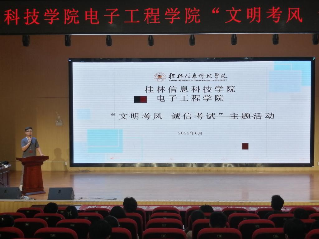为弘扬诚信精神,加强同学们的诚信意识,以积极乐观、诚实守信的态度去面对期末考试。6月8日,电子工程学院分团委学生会在51206报告厅开展“文明考风,诚信考试”主题讲座,由我院分团委副书记朱济亨主讲,学院各班级代表共同参与。