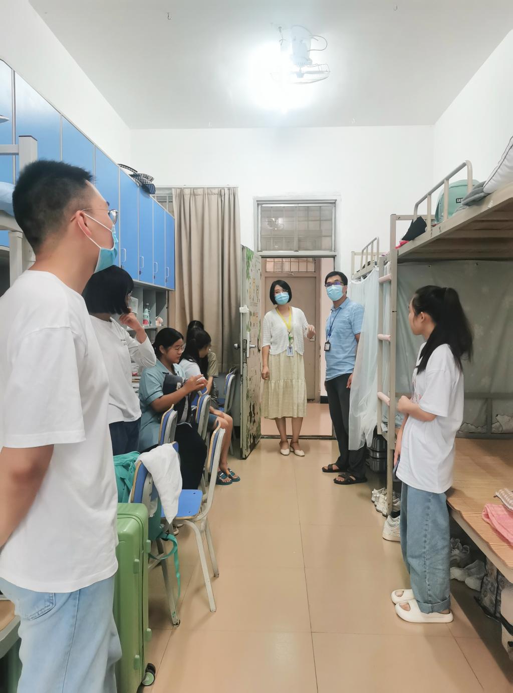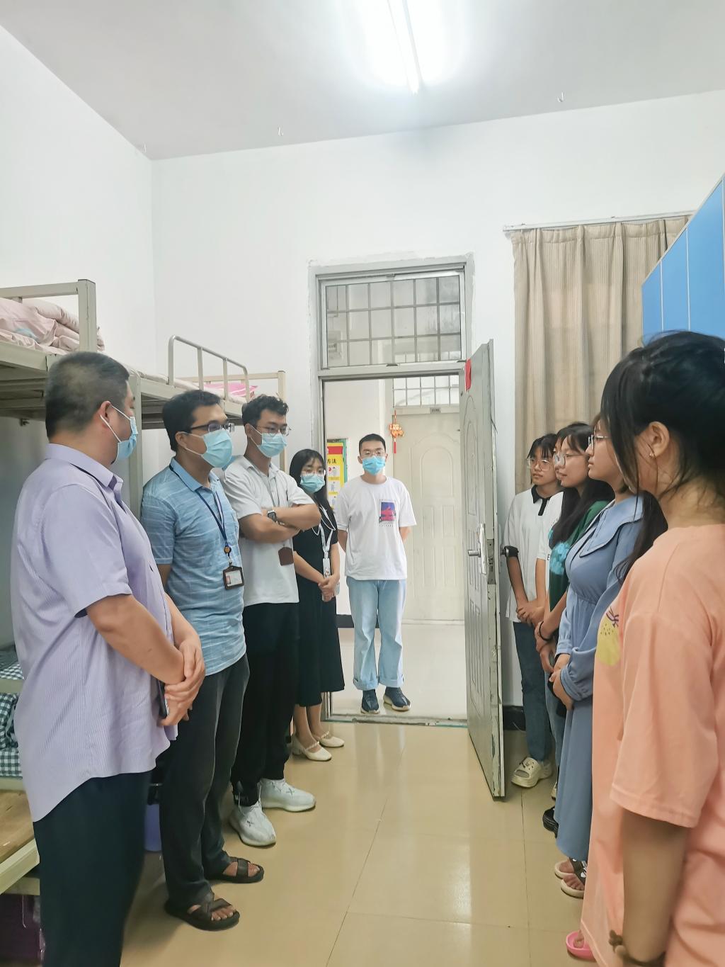 在本次走访过程中,学院领导老师亲切的与新生进行交谈,关心他们到校后是否适应生活学习环境,并提醒同学们疫情期间注意个人防护。学院领导老师指出新生们来自五湖四海,齐聚一堂,要珍惜彼此之间的友谊,互相包容,互相理解,加强交流。