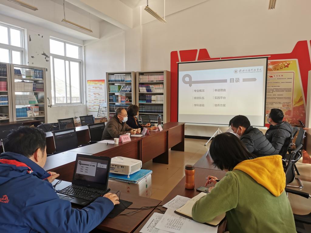本次论证会针对学院高职本科拟申报的电子信息工程技术专业的相关内容进行论证。会上,教研室主任赵志鹏向专家组介绍拟申报的新专业基本情况,分别从人才需求情况和办学基本条件两方面向专家组做了汇报,并详细介绍每一部分的内容。专家组在听完赵志鹏老师的汇报后,认为我院拟申报的电子信息工程技术新专业符合国家政策导向,社会需求强烈,人才培养方案设计比较合理,专业带头人能够在新专业的开办中发挥专业带头作用,推动该专业和学科的发展。另外,我院电子信息工程专业在人才培养、师资队伍、教学科研方面均有较为丰厚的积淀,能够为新专业建设提供有力的软硬件支撑。经过专家组评议,认为开设电子信息工程技术专业作为高职本科新专业具备良好的必要性和可行性,同时在人才需求和办学基本条件等几个方面提出建议和意见。