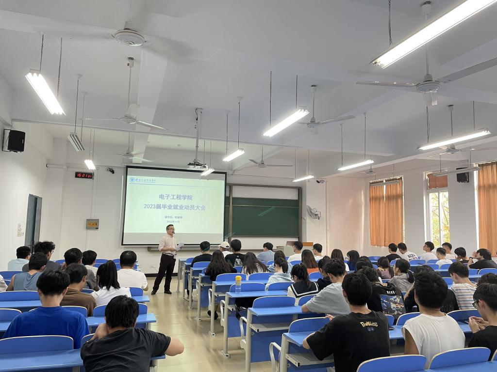 为进一步做好2023届毕业生就业工作,推进就业工作扎实稳步开展,11月10日中午,电子工程学院在31211教室召开2023届毕业生就业动员大会,会议由2019级辅导员欧盛福、蒋金荣主持,2023届全体毕业生分批次参加了动员会。