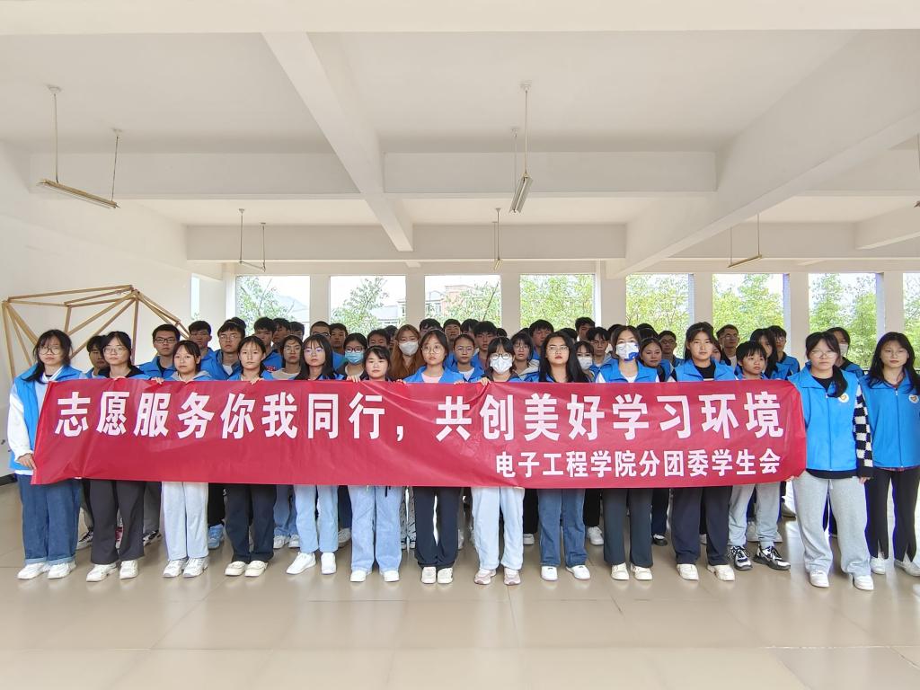 11月3日中午,电子工程学院分团委学生会组织志愿服务团队在四号教学楼开展“志愿服务你我同行,共创美好学习环境”志愿清扫活动,我院各年级共计80名志愿者参与本次活动。