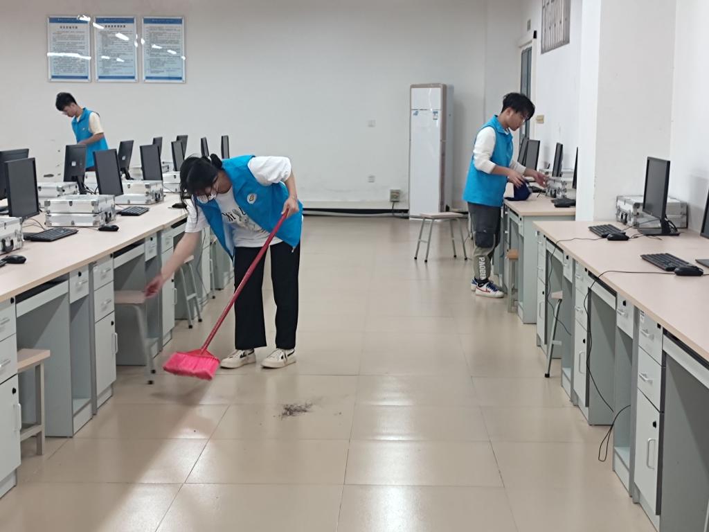 活动中,工作人员将志愿者分成15个小组分别对41301、41304、41305、41306等十五间实验室进行清扫,每位志愿者热情高涨、积极认真、一丝不苟地擦拭着实验室内的仪器设备和桌面地面,不放过任何一个死角。在整个清扫过程中,大家相互帮助,齐心协力。经过志愿者们三个多小时的努力,实验室变得干净整洁、焕然一新。