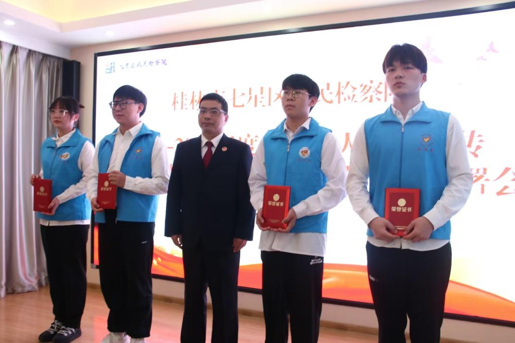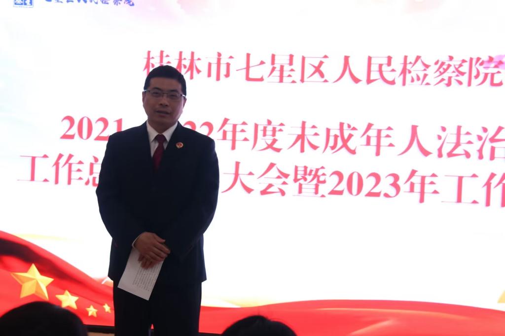 本次大会,首先由七星区检察院未检办主任石钧文作2021-2022年度未成年人法治宣传工作总结及2023年工作部署发言。我院分团委书记范恒祯对宣讲团的大力支持表达了感谢,对法治宣传工作的志愿者们给予了鼓励。特别强调了大家在今后的讲解工作中要继续发扬“雷锋精神”,认真、耐心的为未成年学生们讲解法治知识。随后,七星区检察院副检察长陈志恒作进一步指示,肯定了我院“青年之声”法治宣讲团的出色表现,就2023年宣讲团主要工作进行规划,并为我院宣讲团4名“杰出志愿者”、9名“优秀志愿者”颁发荣誉证书,合影留念。