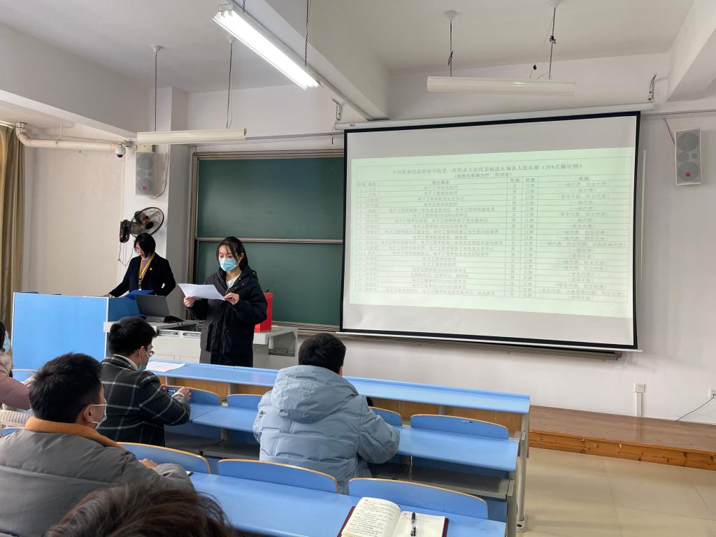 12月6日中午,电子工程学院党总支在32207教室召开选举学校第一次党代会代表党员大会,会议由学院党总支书记庄璧瑛主持,学院61名正式党员参加了会议。