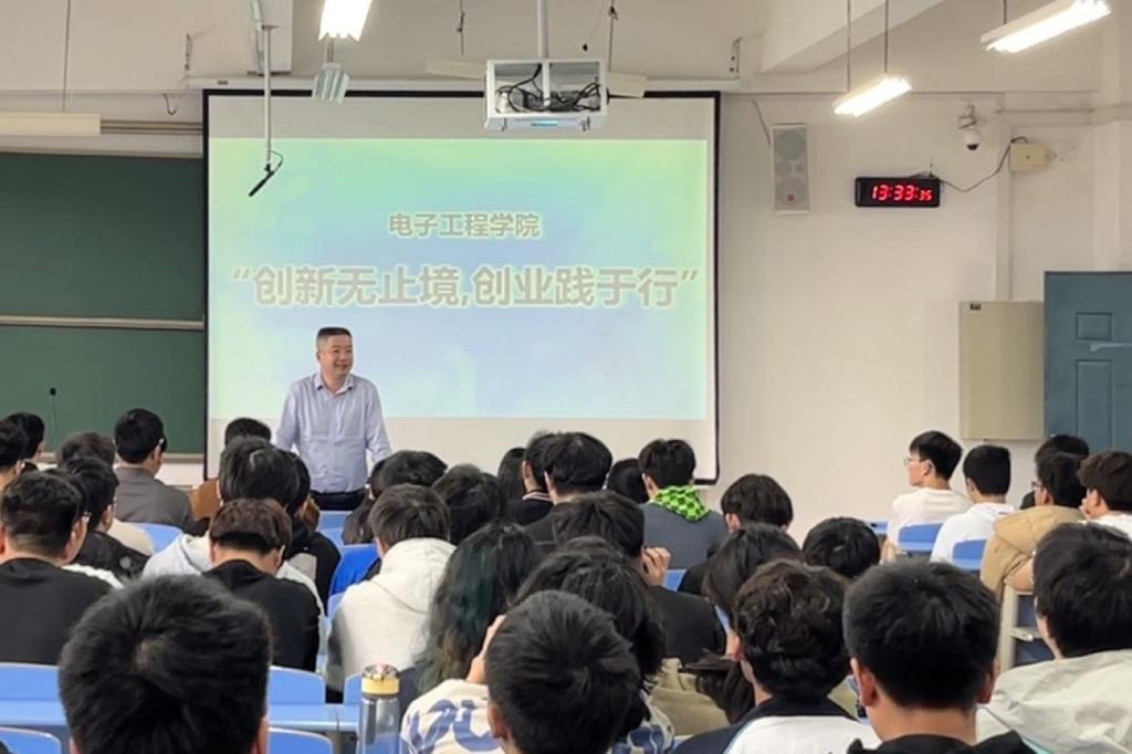 3月29日中午,电子工程学院在32307教室开展“创新无止境,创业践于行”主题教育讲座。本次讲座由学院院长韩桂明担任主讲人,各年级共计180名同学参与本次讲座。