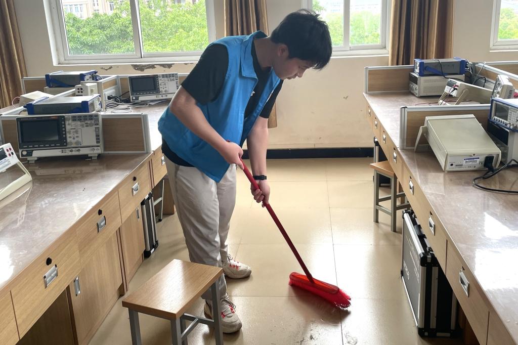 4月14日中午,电子工程学院分团委学生会组织志愿者服务团队共计85名学生,前往四教实验室开展“蓝色志愿映初心,青春献礼二十大”实验室大清扫志愿服务活动。