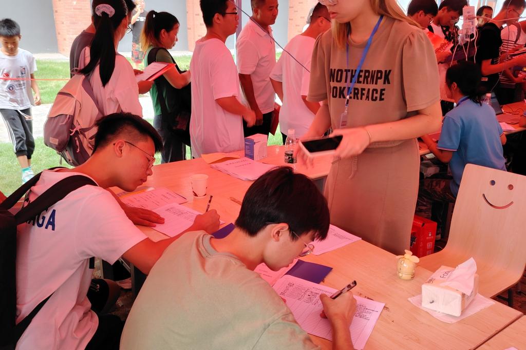 迎新现场,我院教师与迎新志愿者热情接待每一位新生,引导同学们办理报到手续,积极为新生答疑解惑。志愿者们主动为新生搬运行李、帮助他们熟悉校园,人头攒动,秩序井然。迎新期间虽然乌云密布,大雨频频,但丝毫没有减退工作人员迎新服务的热情,将迎新点转移至食堂三楼,室外帐篷调整为“迎新风雨桥”,为同学们遮风挡雨、保驾护航。