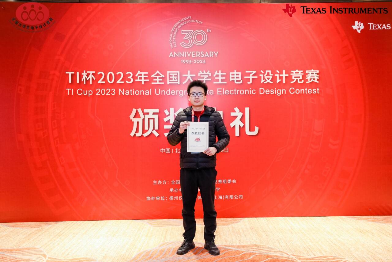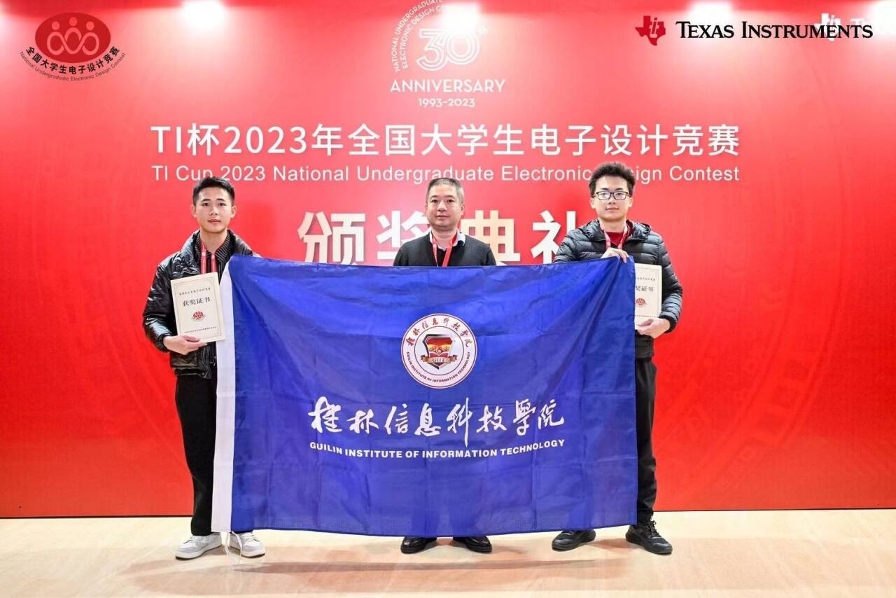 11 月 19 日,2023 年度 TI 杯全国大学生电子设计竞赛颁奖典礼暨全国大学生电子设计竞赛 30 周年庆典在北京隆重举行,全国优秀参赛队伍代表受邀前往北京接受表彰。beat365电子工程学院获奖指导教师代表韩桂明和学生代表秦发胜、梁璐受邀参加此次盛会。
