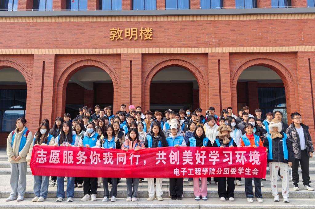 为进一步弘扬“奉献、友爱、互助、进步”的志愿服务精神,为营造良好的学习氛围。12月26日中午,电子工程学院组织115名志愿者前往敦明楼实验室开展“洁净校园,清新你我”校园清洁志愿服务活动。