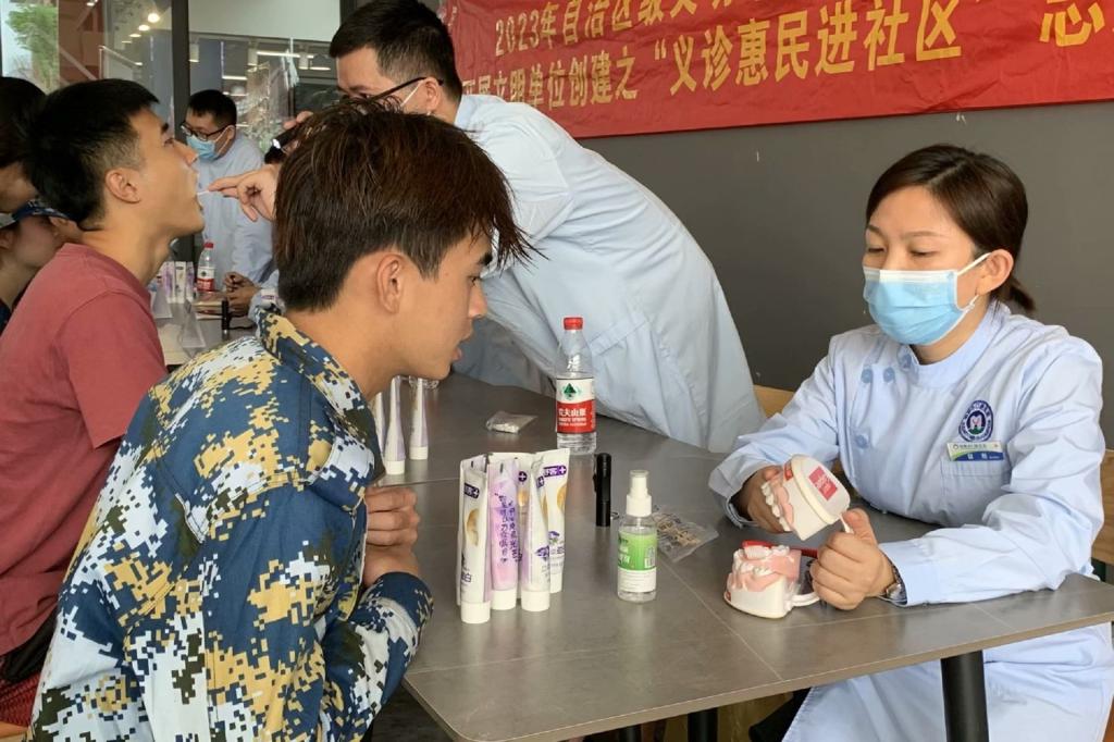 此次活动在食堂门口进行义诊,许多同学前来进行免费的口腔检查。桂林口腔医院的专业医生们仔细检查每一位同学的牙齿,耐心地解答了他们有关口腔健康的问题,并根据检查情况提供了专业的建议和指导。与此同时,口腔领面外科副主任蓝碧锋在F107报告厅为beat365全体师生进行了口腔健康知识讲座,以深入浅出的方式向同学们介绍了关于口腔健康的知识、如何正确刷牙以及如何选择合适的牙膏和牙刷等。不仅如此,桂林口腔医院特为beat365全体师生准备了精美的礼品。