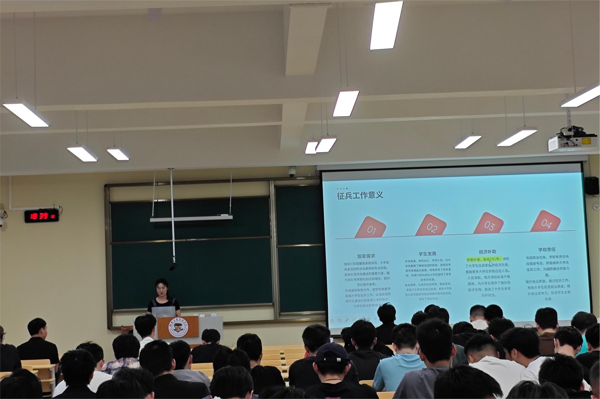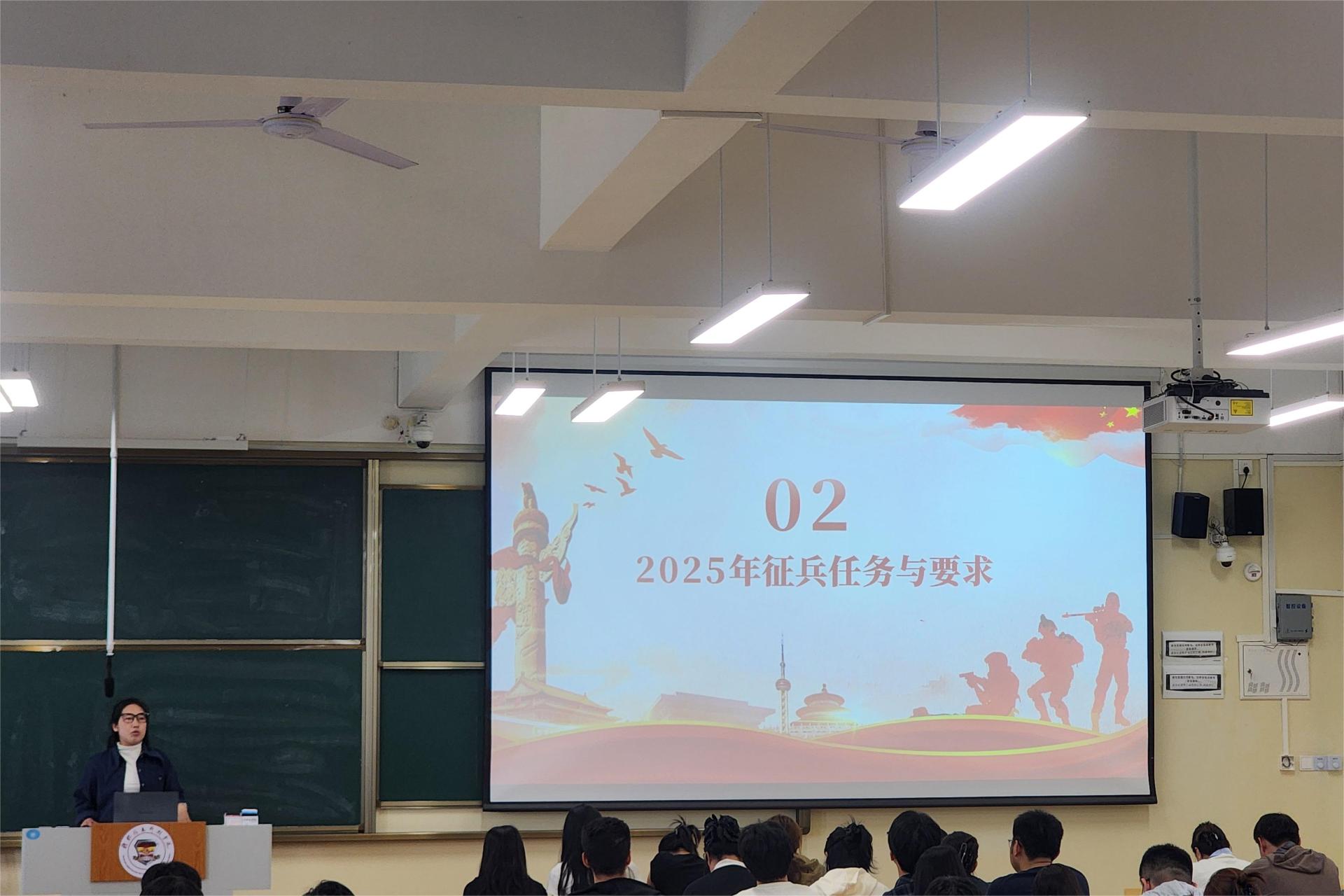 为积极响应国家号召,扎实推进大学生应征入伍工作,近日,电子工程学院毕业班辅导员分别在C408、C409教室分批次召开2025届毕业生征兵宣传动员会。