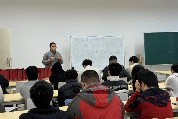 冬日暖阳抚人心,考研征程伴温情。2025年12月16日下午,电子工程学院在敦明楼A514教室成功举办2026届考研暖心助力活动。在研究生招生考试冲刺的关键阶段,学院以“‘电’亮未来,一‘研’为定”为主题,为正在全力备战的学子送上了一份特别的关怀与鼓励,旨在缓解备考压力、增强迎考信心,营造团结互助的学院氛围。