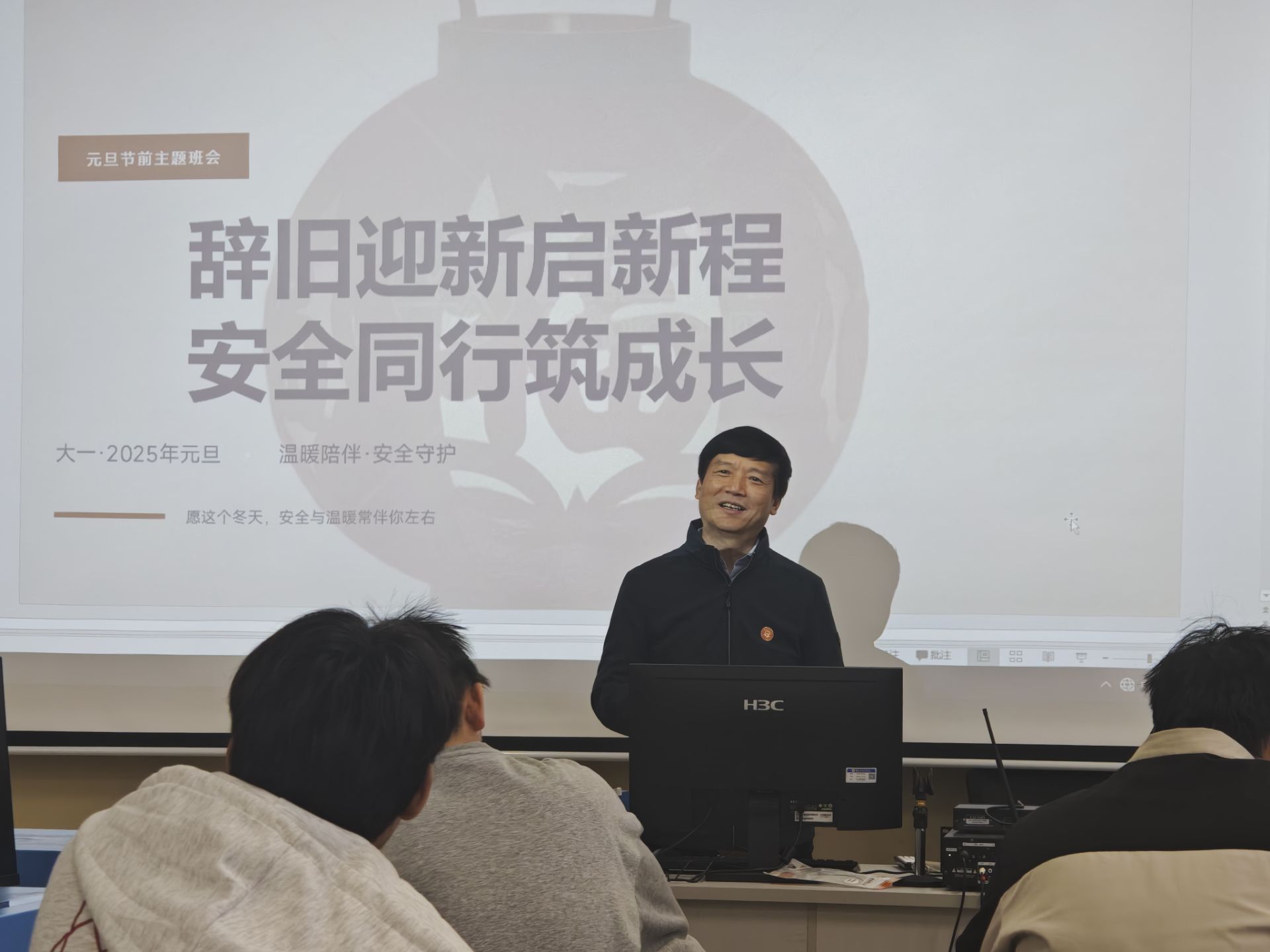 12月31日,电子工程学院2025级电子信息工程1班“辞旧迎新启新程,安全同行筑成长”主题班会在敦明楼A212顺利举行。班主任许玲主持,校长解庆林亲临现场,与同学们亲切交流,并送上真挚的新年祝福。