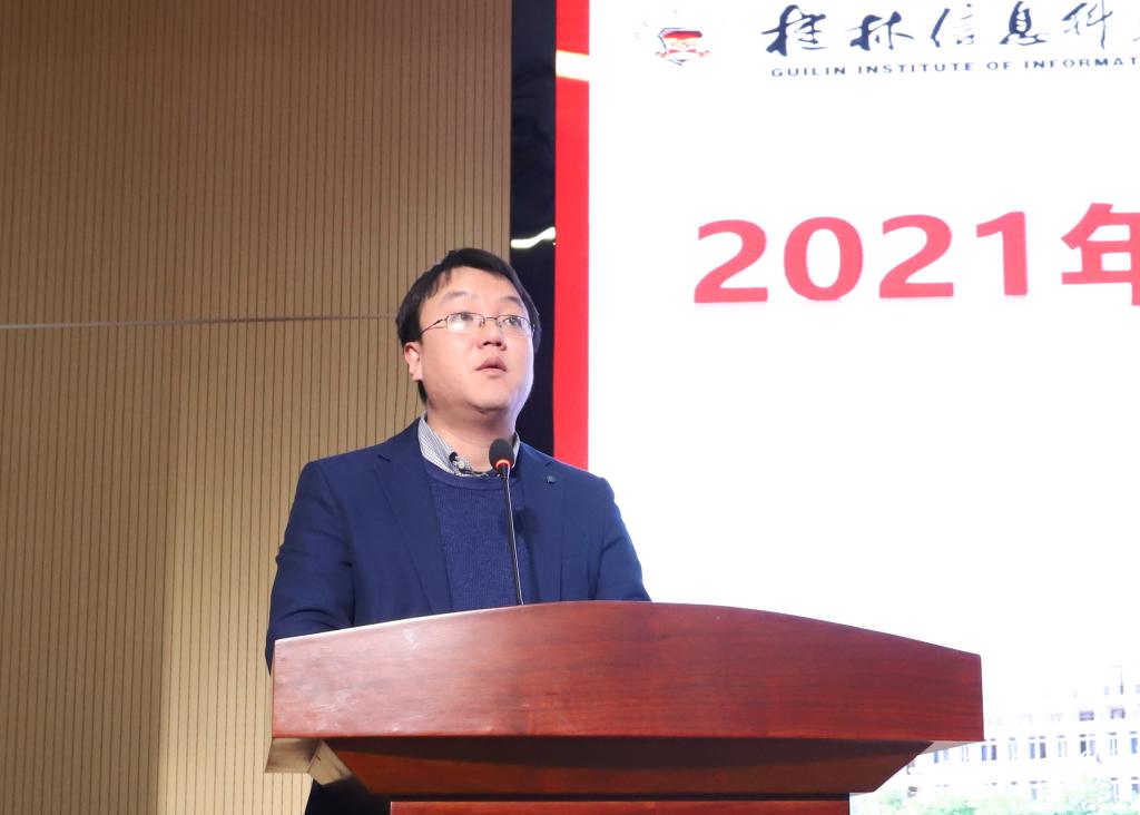 学校党委书记、校长甘勇代表学校向受表彰的先进集体和个人表示热烈的祝贺,向奋斗在宣传思想工作、学生工作和就业创业工作岗位上的广大教师表示由衷的感谢。甘勇表示,2021年,学校坚持以习近平新时代中国特色社会主义思想为指引,在上级党委的正确领导下、在学校董事会的大力支持下,顺应发展新形势,抢抓发展新机遇,团结带领师生员工,立足新起点,顺利完成转设工作任务,实现了新跨越,开启了学校发展的新篇章,是学校发展史上极具里程碑的一年。甘勇强调,一年来,学校全面贯彻党的教育方针、坚持社会主义办学方向,努力解决“为谁培养人、培养什么人、怎样培养人”这一根本性问题,围绕宣传思想工作“总开关”、学生工作“全育人”和就业创业工作“总成绩”等方面统筹推进,全面落实学校“立德树人”根本任务和时代使命。
