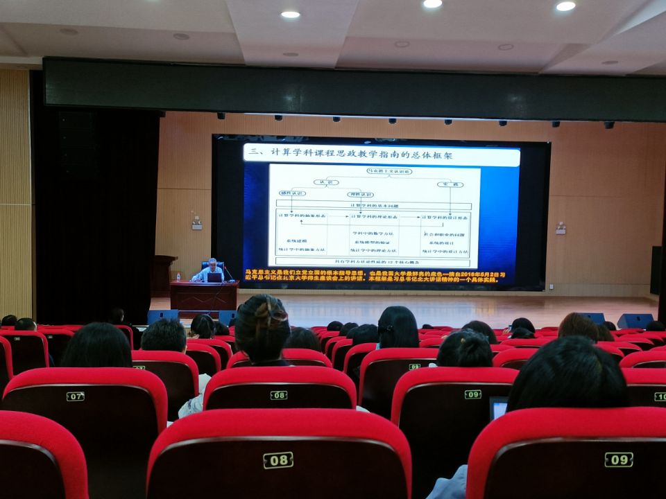 董教授展示了计算学科课程思政教学已有的成功事例,解读了教育部课程思政示范课——计算机科学导论相关案例和其中涉及到的课程思政关注点。他强调,要做到将思政元素有机融入到课程教学中,达到润物无声的育人效果,科学设计教学大纲和课件是关键。