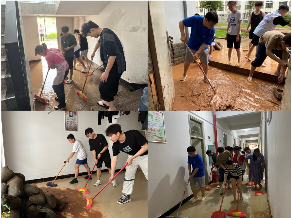 快速处置,彰显党员担当。汛期来临时,七号公寓的生活老师周雄莺在19级党员群发出号召,清扫七号公寓积水,支援六号公寓。学生党员薛航积极响应,第一时间与其他同学抵达现场。他说:当时在现场没有想太多,我觉得公寓就是我们的第二个家,现在需要我们自己帮助自己的家,我们义不容辞,积极投身于工作当中,清除淤泥,扫出积水。信息工程学院刘杭同学表示,“我也选择了参与其中,毕竟这是属于我们的集体利益,而且学校领导也在第一时间和同学们共渡难关,从凌晨开始公寓老师连夜陪我们一起解决困难。