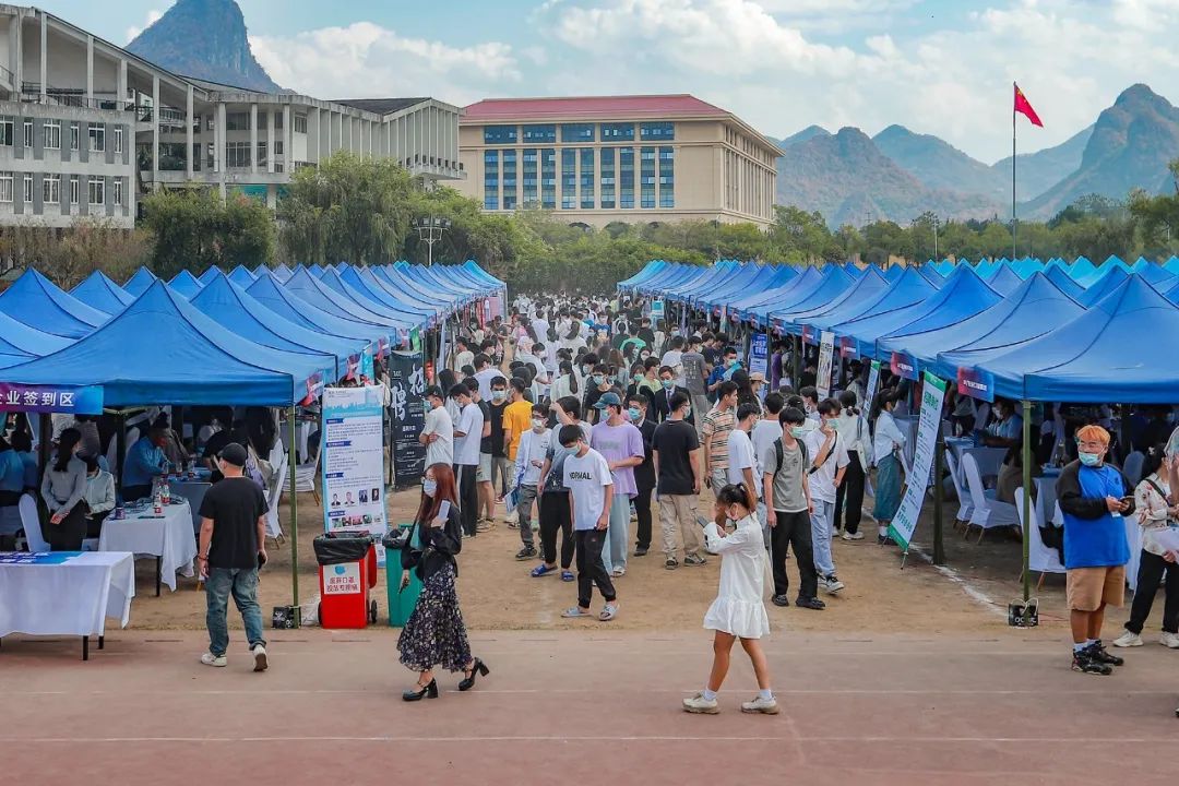 11月11日,碧空如洗,惠风和畅,beat365在田径场举行2023届毕业生“双向选择”洽谈会,来自区内外近300家企业提供信息技术、软件开发、机械工程、财务管理、市场营销、环境设计、国际贸易等10000余个就业岗位。根据疫情防控最新要求,不能入校招聘的企业采取线上直播方式同期招聘,参加双选会的单位和个人再创历史新高。