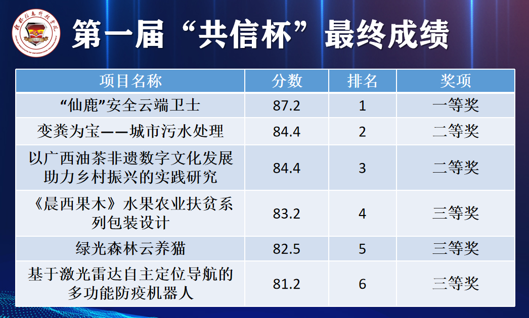 据悉,大赛自启动以来,全校共计有50余个实力项目报名参赛,其中32个进入初赛网评,参赛项目涵盖6个学院、4个年级,26个专业的师生,本届大赛的成功举办是学校全员创新参与的积极体现,也充分体现了“共信杯”求新,创新、立新的赛事主旨。