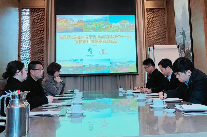 2月9日,学校副校长陈智勇一行4人走访了阳朔悦榕庄酒店,与酒店副总经理朱博等公司领导深入交流,外贸与外语学院和招生就业处相关教师陪同走访。