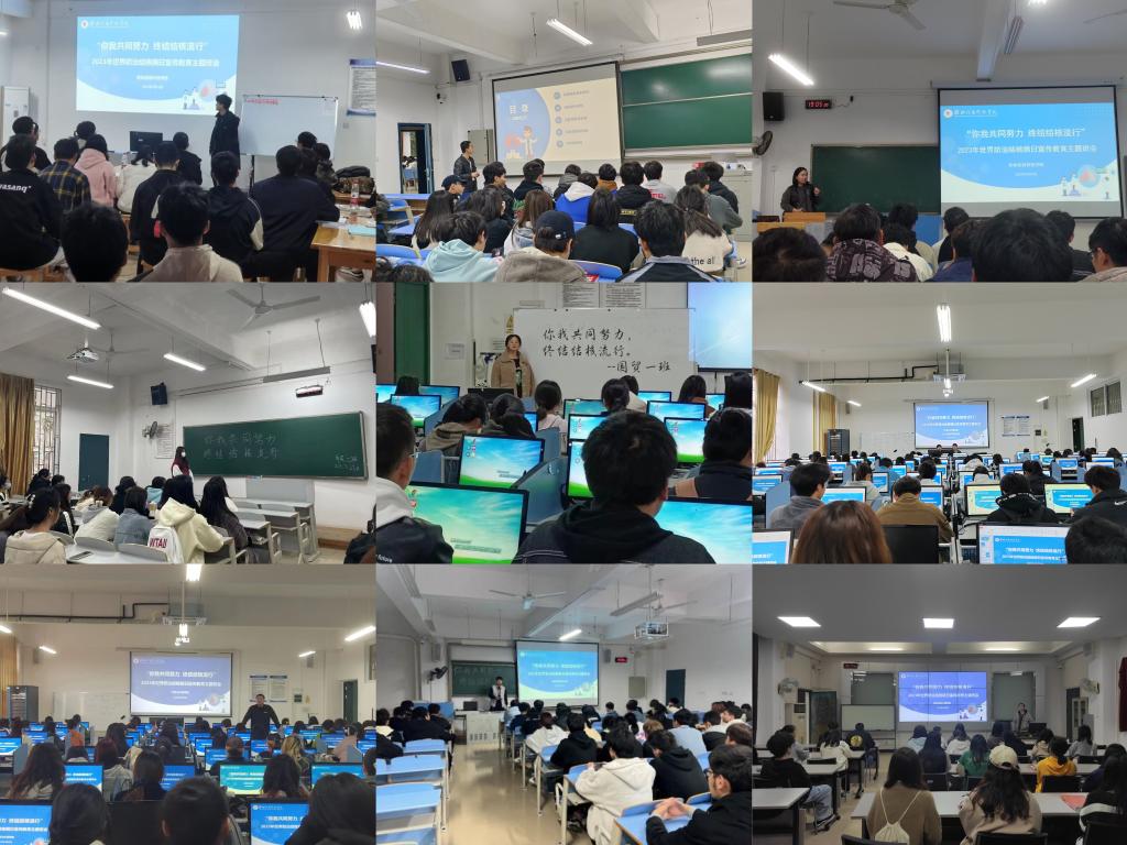 2023年3月24日是第28个世界防治结核病日,今年宣传主题为“你我共同努力 终结结核流行”。为深入学习贯彻党的二十大精神,认真落实《健康中国行动(2019—2030年)》和《健康广西行动实施方案》,扎实做好2023年世界防治结核病日宣传教育活动,践行“人民至上 生命至上”的理念,促进师生树牢“自身健康第一责任人”意识。近日,校团委联合保卫处、外贸与外语学院围绕宣传主题,通过讲座、海报、主题班会等形式,开展学校2023年“世界防治结核病日”宣传活动。