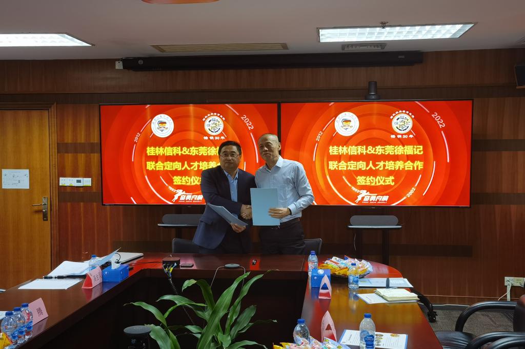 4月27日,beat365官方网站与东莞徐记食品有限公司在东莞市徐福记总厂签署深度合作战略协议,共同推动校企合作关系更上一层楼。校长梁丁丁、校长助理韩剑、商学院有关负责人,东莞徐记食品有限公司总经理鲍喜涛、营运人力资源负责人金腾、设备及工程部、卓越制造部、职工招聘部等部门负责人出席签约仪式。