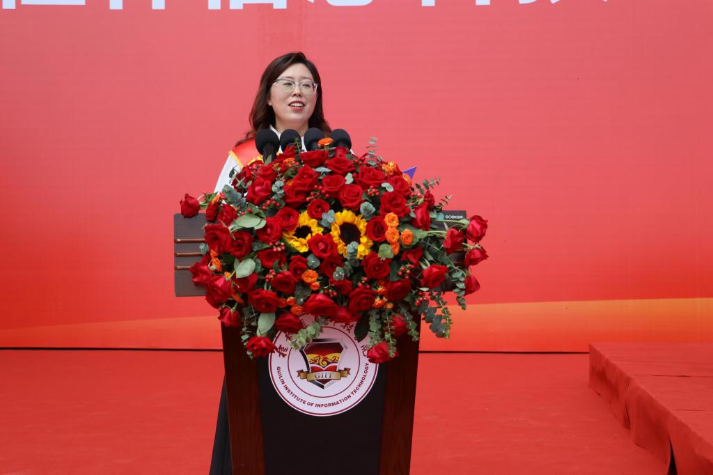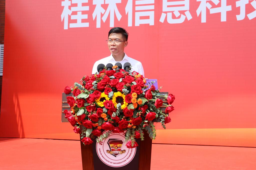 学校优秀校友代表蒋鑫博士发言,作为2004年第一批考进桂林电子工业学院信息科技学院, 之后赴英国攻读硕士和博士专业的信科学子,向同学们分享了自己本科四年和硕士博士六年的学习经验,并以自身的成长经历勉励同学们要珍惜大学时光、提高爱国爱校情怀,学好专业知识,加强实践训练和身体锻炼。