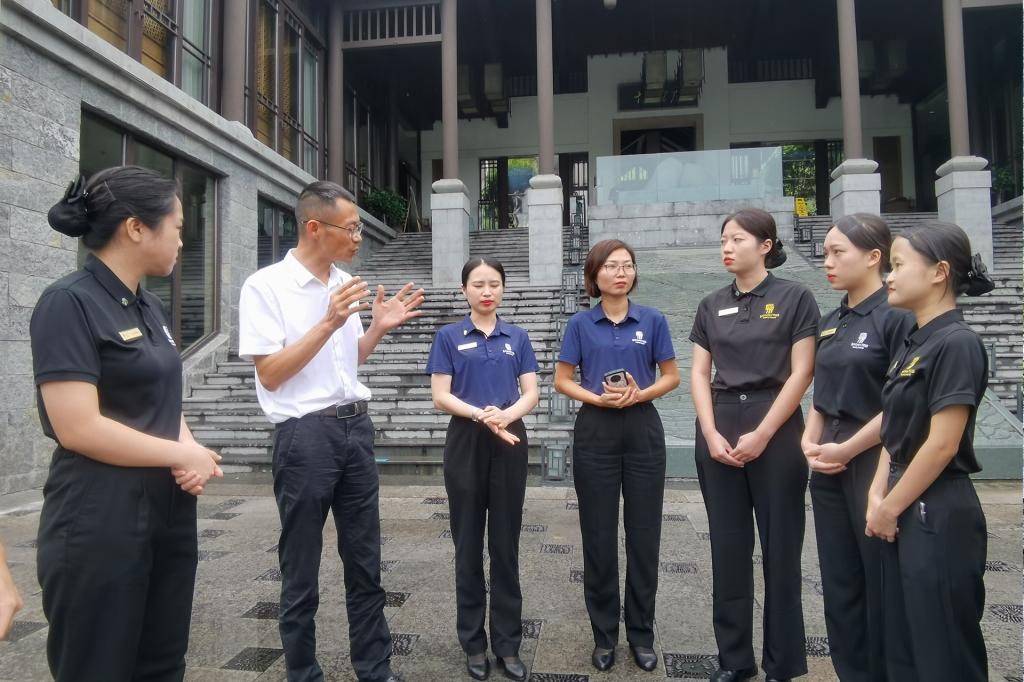 为推进悦榕酒店集团人才定制班工作,9月14日,学校副校长刘跃峰带领外贸与外语学院相关教师走访了阳朔悦榕庄酒店。悦榕酒店集团中国区高级人力资源总监任小燕以及阳朔悦榕庄总经理周猛、人力资源副总监陈秋凤、学习与发展经理黄丽芳、人力资源部副经理花廷宝等人出席了定制班研讨会。