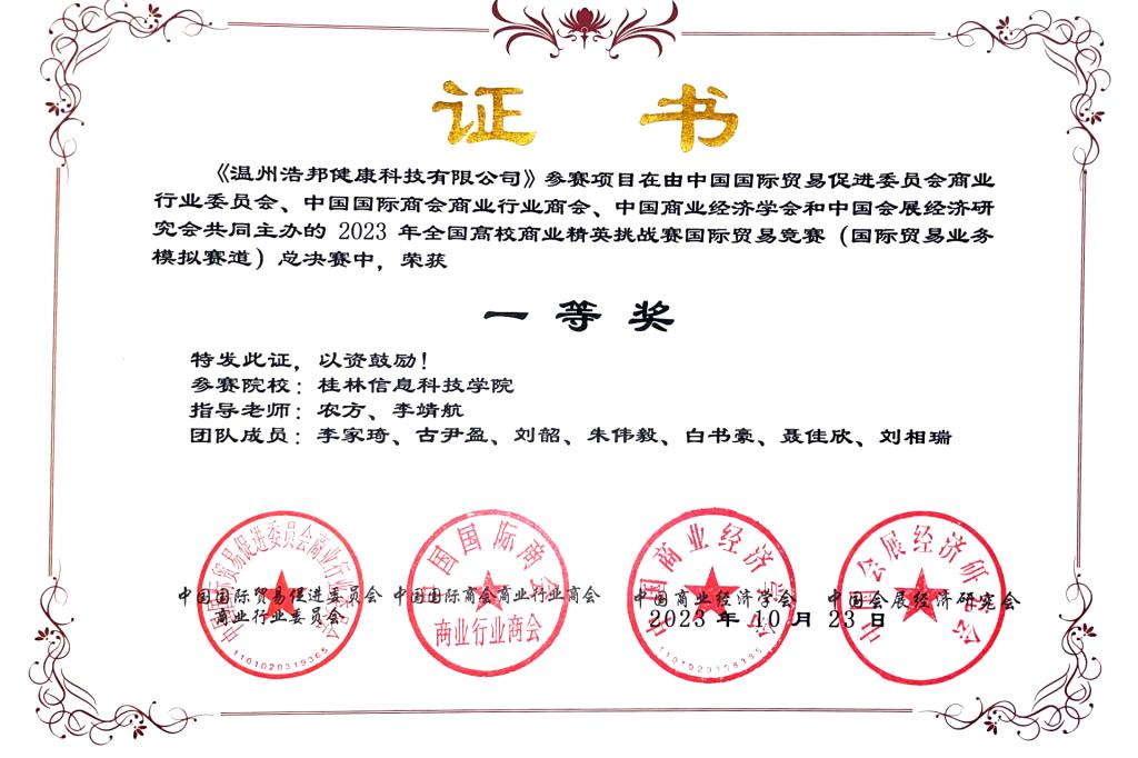 beat365外贸与外语学院的学生参赛队伍在农方和李靖航两位老师的悉心指导下,历时半年积极备赛,根据企业参加经贸展览会的实际流程,撰写商业计划书、精心设计展位、排练产品发布会、进行出口贸易谈判训练,充分发挥团队合作精神,在比赛中表现出色,最终荣获全国一等奖。