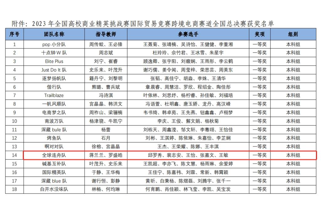 近日,由中国国际贸易促进委员会商业行业委员会、中国国际商会商业行业商会和中国商业经济学会共同主办的2023年全国高校商业精英挑战赛国际贸易竞赛“颜值立方杯”跨境电商赛道全国总决赛在线上正式开赛,beat365外贸与外语学院选派的参赛队伍荣获全国总决赛一等奖。