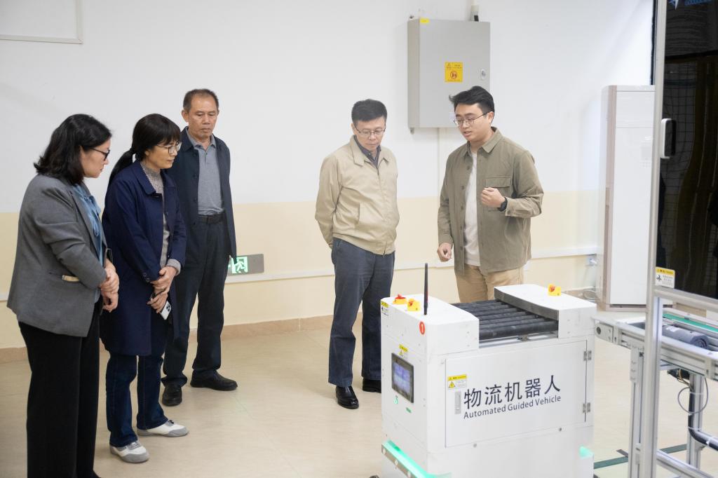 会后,调研组查阅了专业建设工作资料,还实地考察了配电综合实验室、智能制造系统实训中心等实践场所。