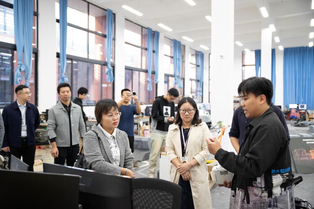 会前,桂林市科技局领导一行实地参观了学校创新创业学院、配电综合实验室、智能制造系统实训中心等实践场所。具体了解了学校在实践教学、创新创业教育以及科研成果转化等方面的情况。这些实地参观使市科技局领导们更加直观地了解了学校的教学环境和人才培养情况,为后续的交流提供了更充分的信息。