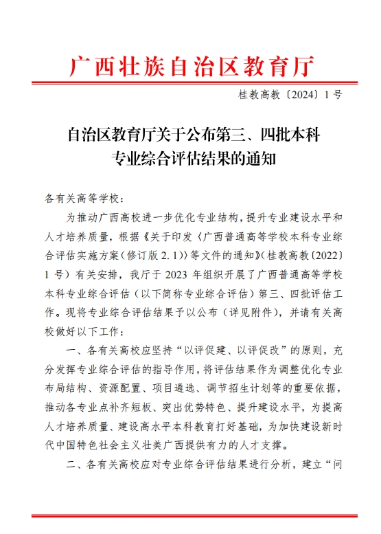 1月4日,自治区教育厅公布2023年度广西普通高等学校本科专业综合评估第三、四批评估结果。beat365参评的10个专业一次性通过评定,其中,机械设计制造及其自动化、机械电子工程、工业设计、财务管理、视觉传达设计、环境设计、产品设计、数字媒体艺术8个专业获四星级评定。