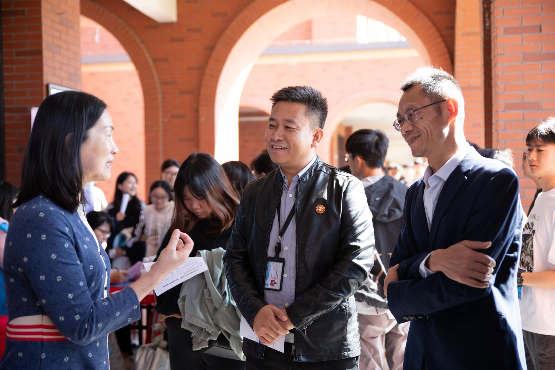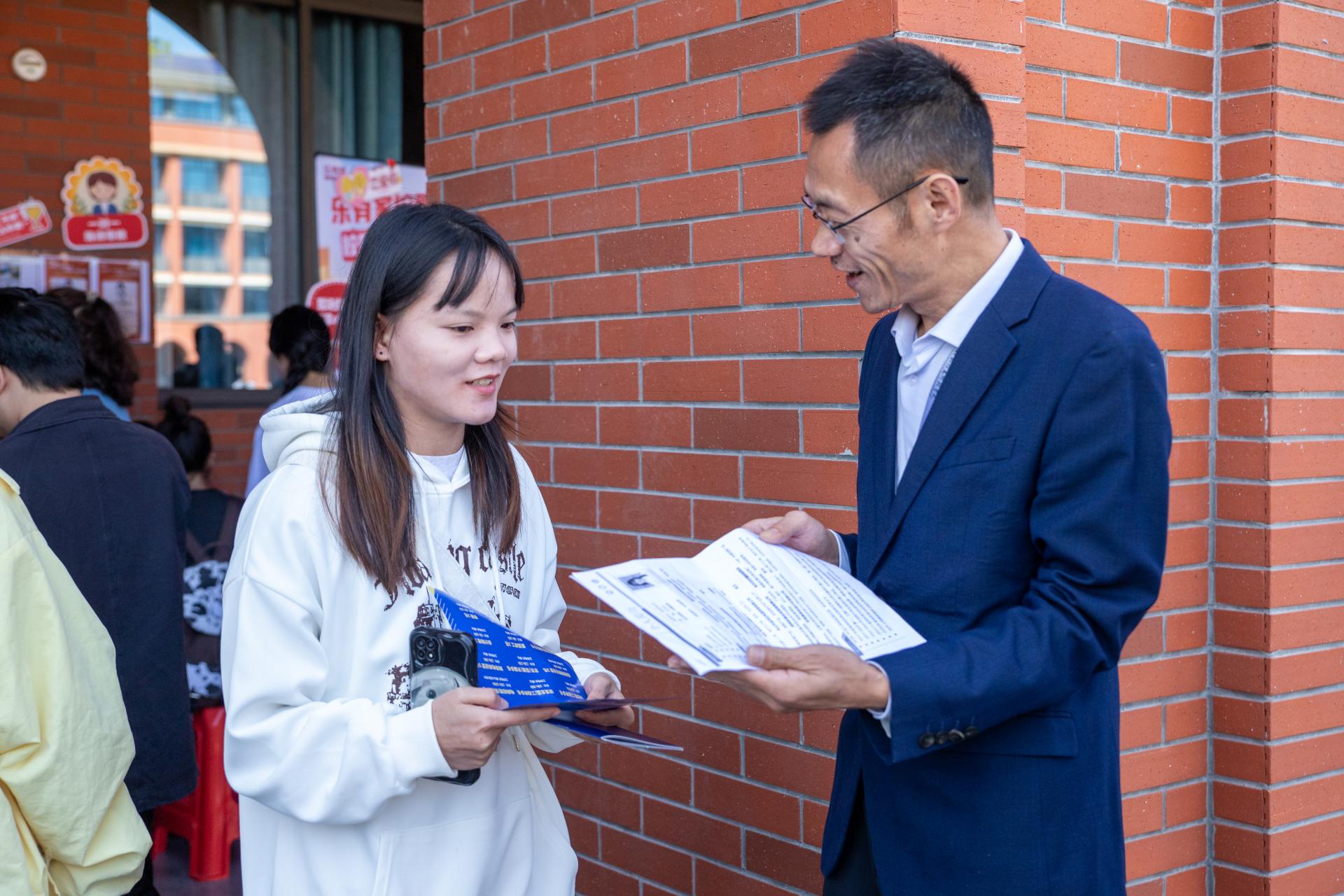 学校领导与用人单位、学生亲切交谈