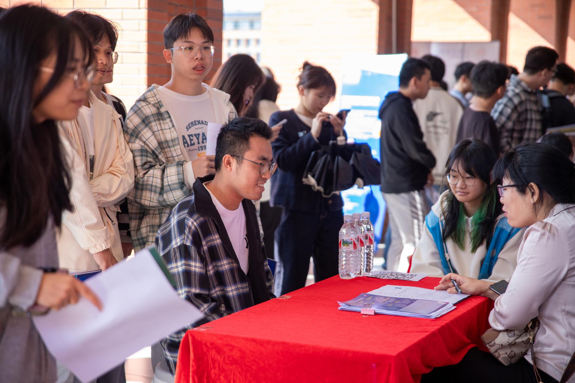 10 月 23 日上午,阳光倾洒在校园中轴线的“信科之眼”,两侧教学楼环廊热闹非凡,学校“百企进校园”2025 届毕业生就业双选会在此成功举办。
