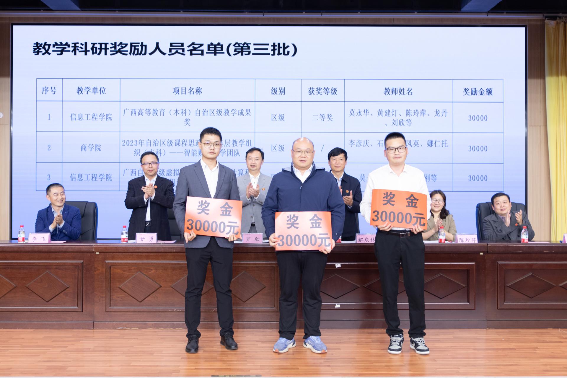 副校长陈玲萍随后宣读了《关于发放2024年教学质量工程项目教学奖励的通知》,主席台领导为获奖教师颁奖,表彰他们对教学质量做出的卓越贡献。